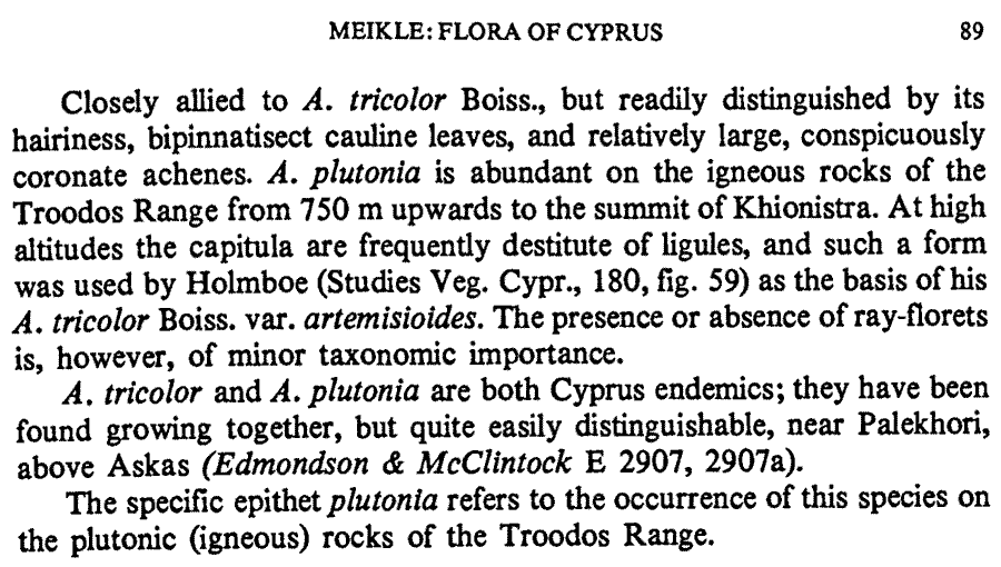 | Andriy Kovalchuk | Протолог Anthemis plutonia Meikle (Annales Musei Goulandris 6: 88. 1983):