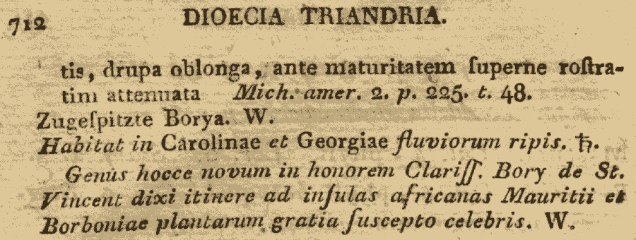 Род назван в честь Жана-Батиста Бори де Сен-Венсан (Jean-Baptiste Bory de Saint-Vincent; 1778 — 1846), французского ботаника, естествоиспытателя, вулканолога и путешественника:
