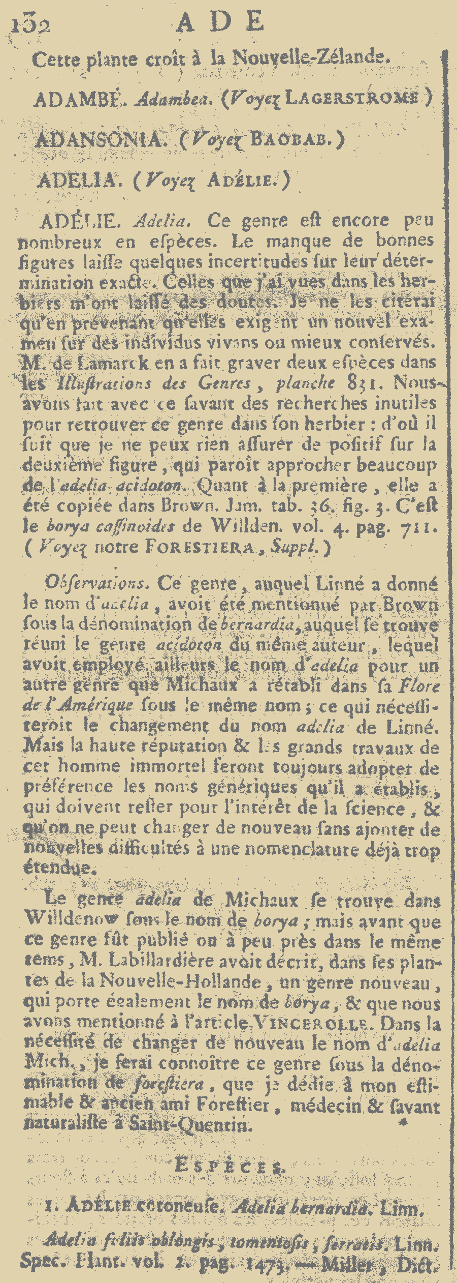 (Encyclopédie Méthodique. Botanique [J. Lamarck & al.] Supplément 1(1): 132. 1810 (3 Sep 1810); тип: