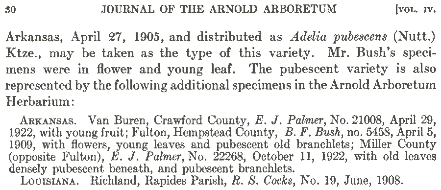 | Andriy Kovalchuk | Протолог Forestiera acuminata var. vestita E.J. Palmer (Journal of the Arnold Arboretum 4(1): 29–30. 1923):