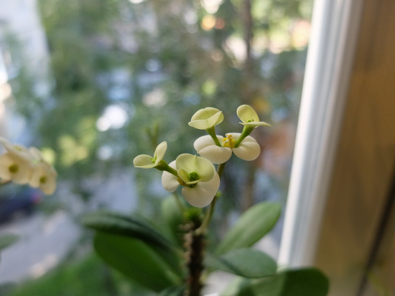 | Vladislav Grigorenko | А разве это аномалия? Бывает и похлеще - https://thepalmroom.wordpress.com/plant-care-discussion-forum/crown-of-thorns-euphorbia-milii/ У многих молочаев могут развиваться циатии в развилке двух соседних. А только лишь два циатия на вершинах буквы V - это просто самый массовый вариант (но не единственно верный  ... |