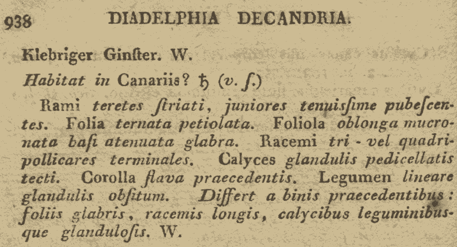 Протолог Genista viscosa Willd. (Species Plantarum, ed. 4 [Willdenow] 3(2): 937. 1802):