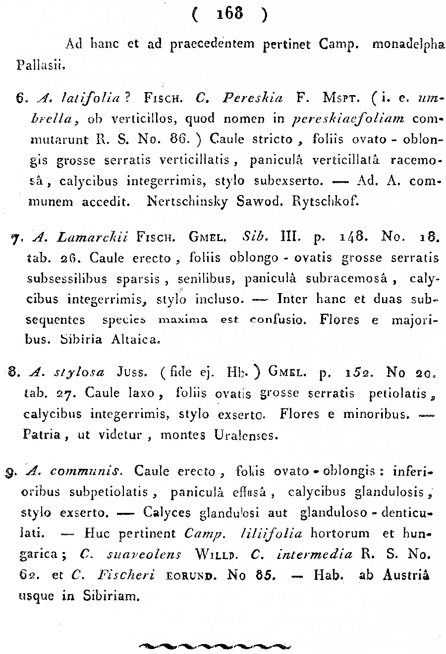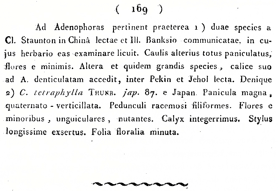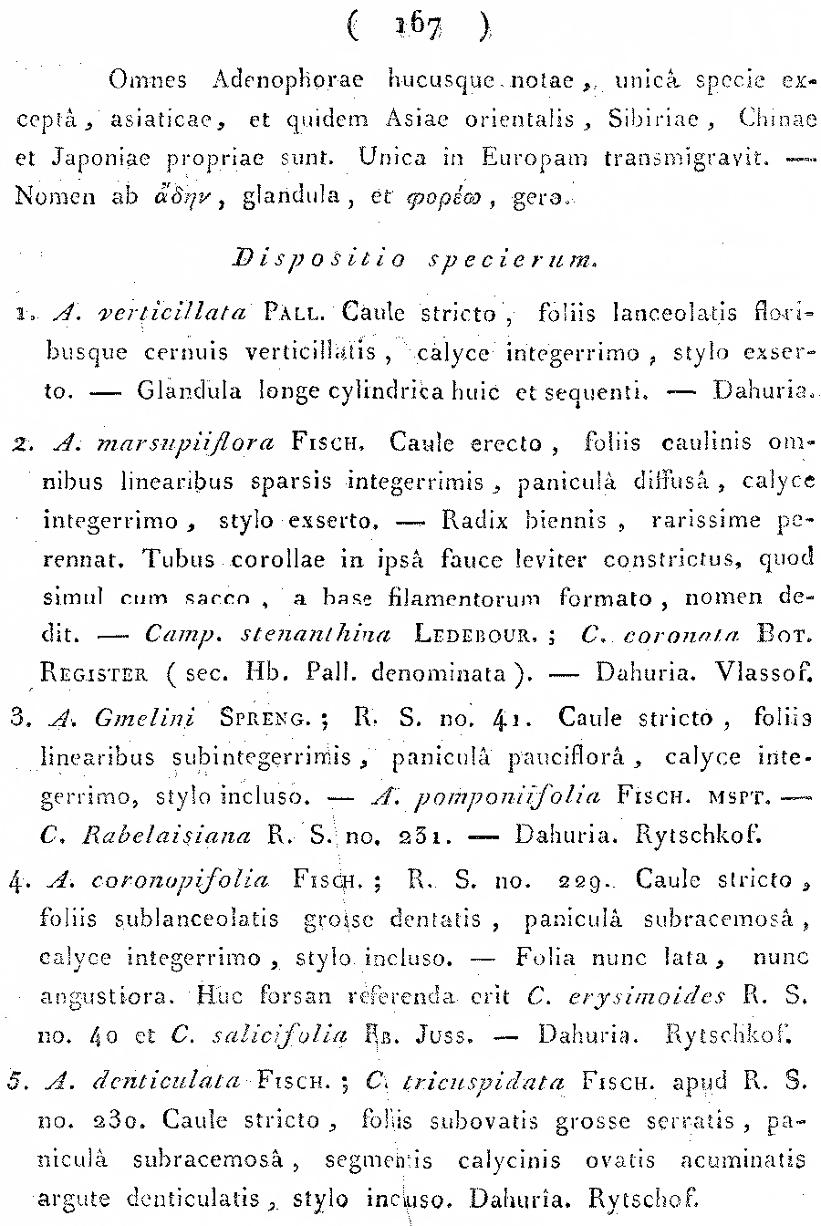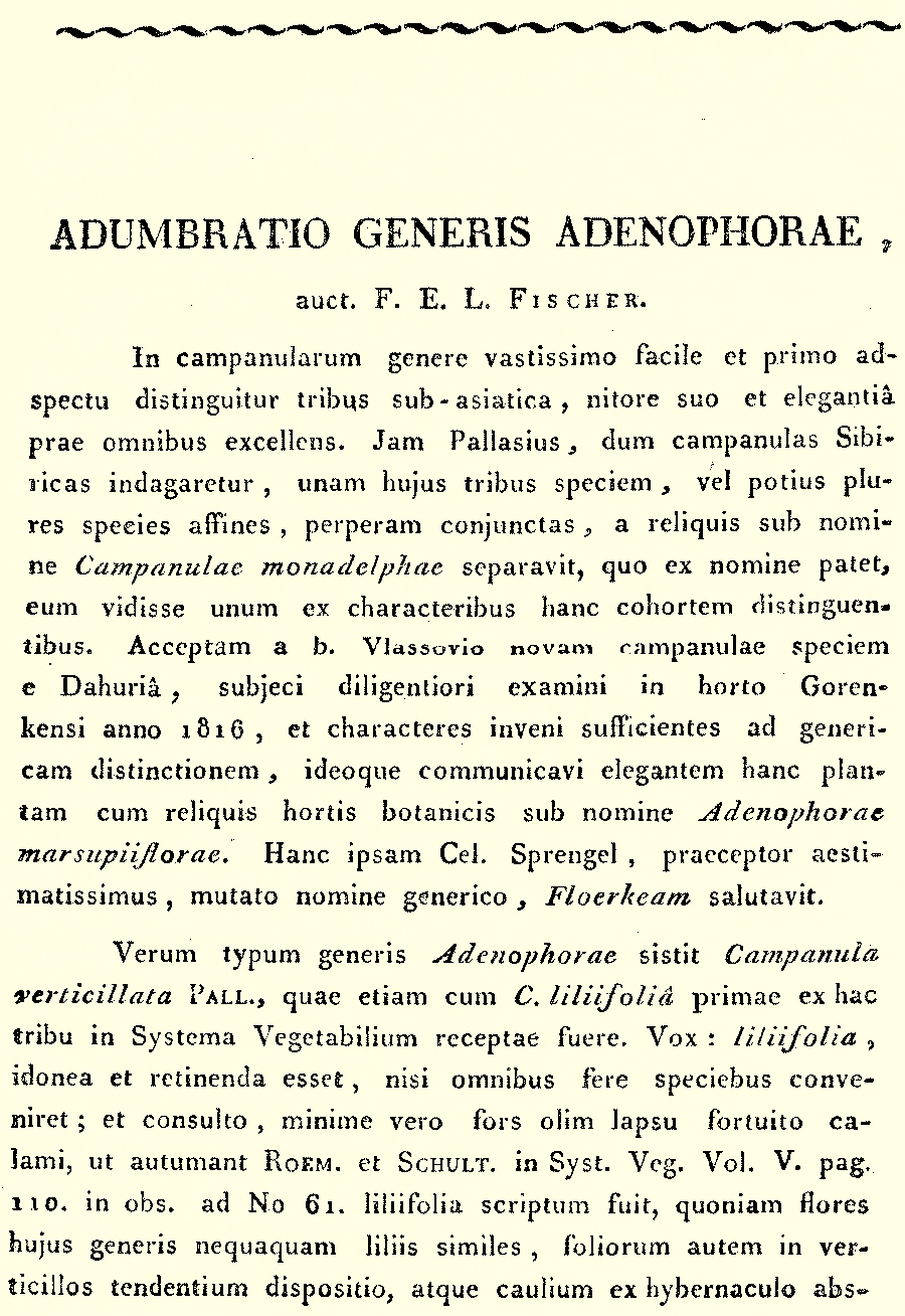 | Andriy Kovalchuk | Протолог рода Adenophora Fisch. (Mémoires de la Société Impériale des Naturalistes de Moscou 6: 165. 1823; тип: Adenophora verticillata Fisch. (≡ Campanula verticillata Pall., nom. illeg.  :