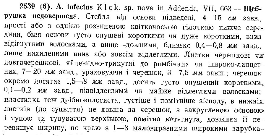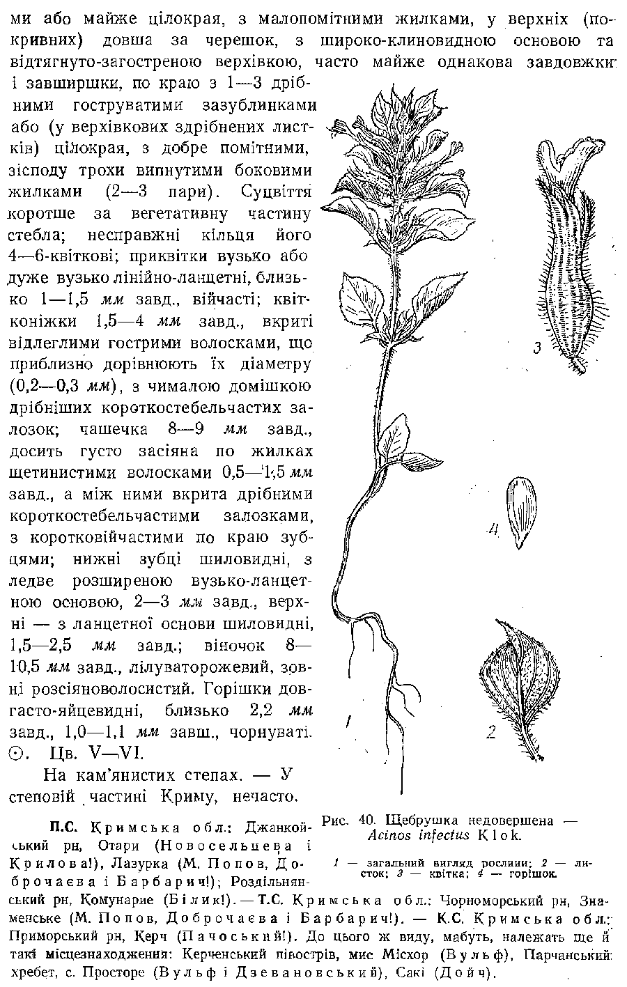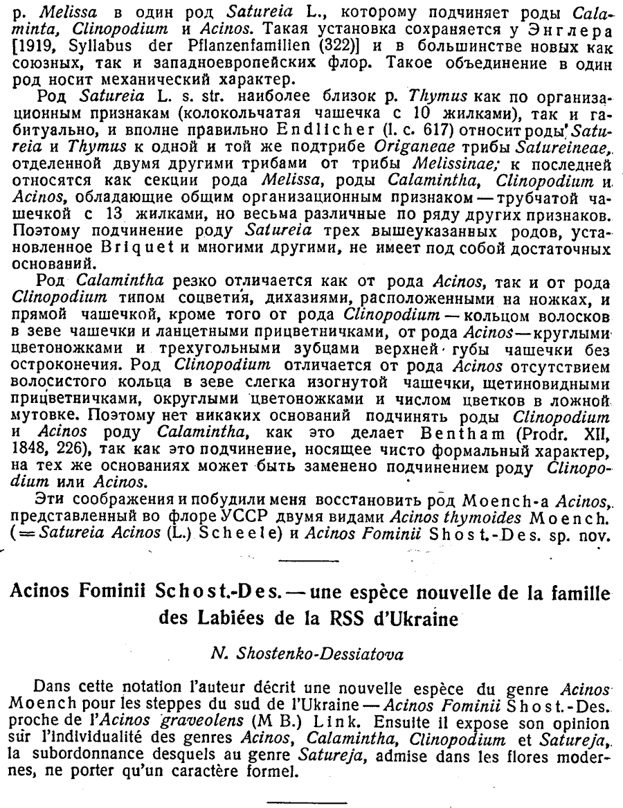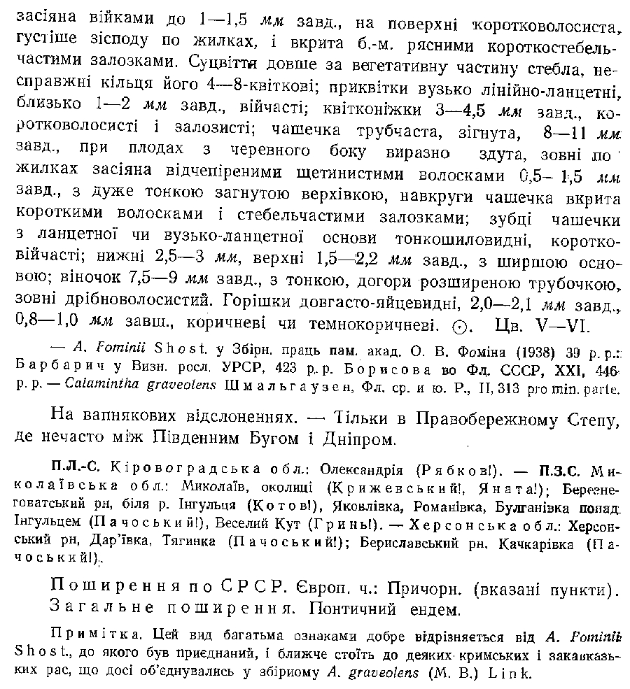 Протолог Acinos fominii Des.-Shost. (Збірник праць, присвячений пам'яті академіка О.В. Фоміна: 39-44. 1938):