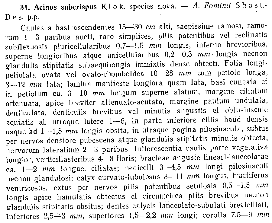 | Andriy Kovalchuk | Протолог Acinos subcrispus Klokov (Флора УРСР 9:662(-663), 278-280. 1960):