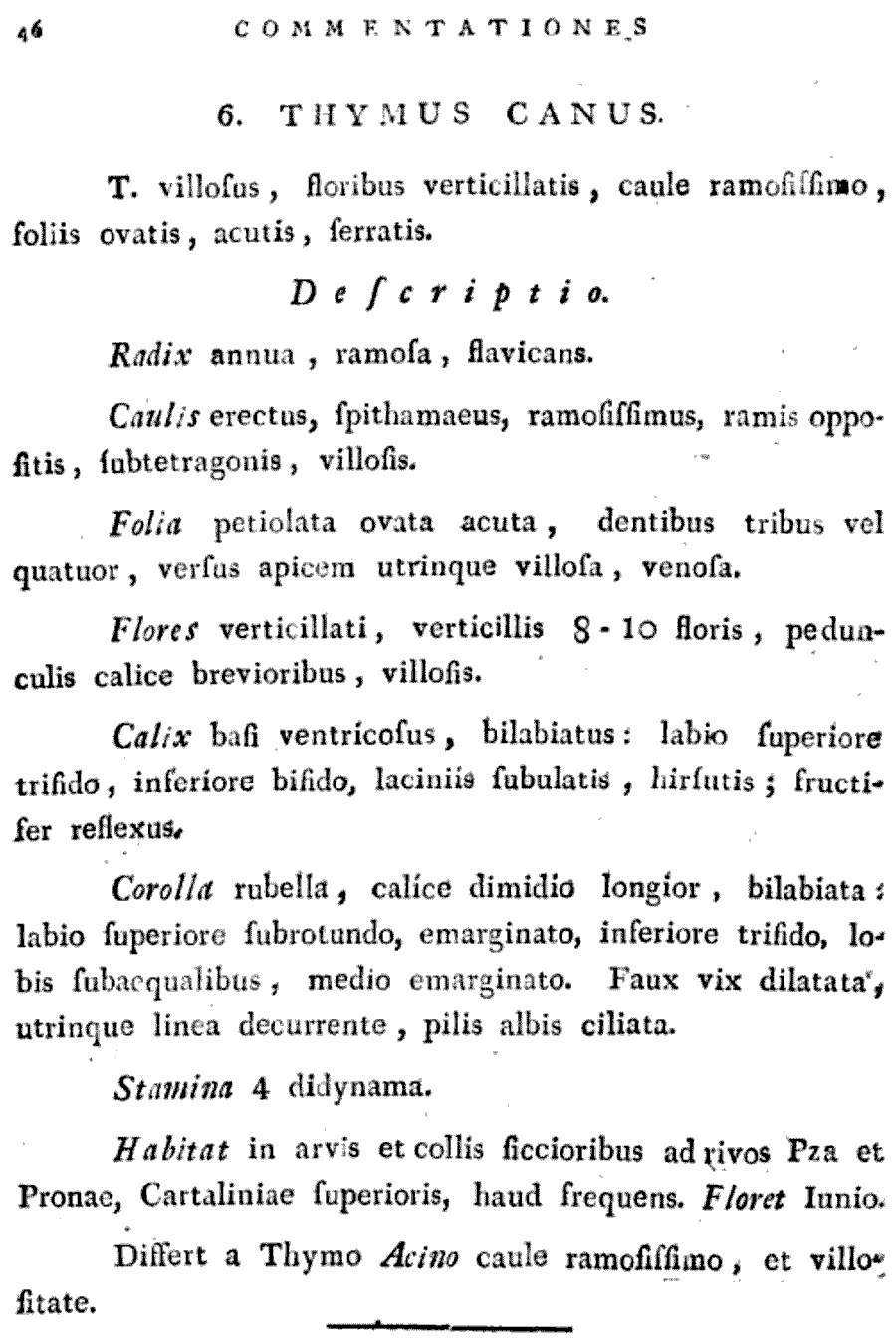 Протолог Thymus canus Stev. ex Hoffm. (Commentationes Societatis Physico-Medicae apud Universitatem Litteratum Caesaream Mosquensem Institutae 1: 46. 1808):