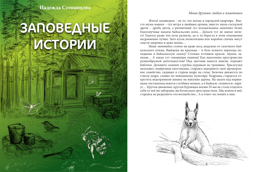 | Надежда Степанцова | Друзья! Хочу представить вашему вниманию свою первую художественную книжку о нашем житье-бытье в заповеднике, на Байкале и реке Лене. Она о зверушках, походах, приключениях. Это рассказы-были с реальными героями  Иллюстрации мои. Объем книжки 72 стр. Цена 200 руб. + за пересылку немножко, около 50. Позже напишу точнее. Возьму из типографии на днях. Если интересно - заказывайте пожалуйста! |