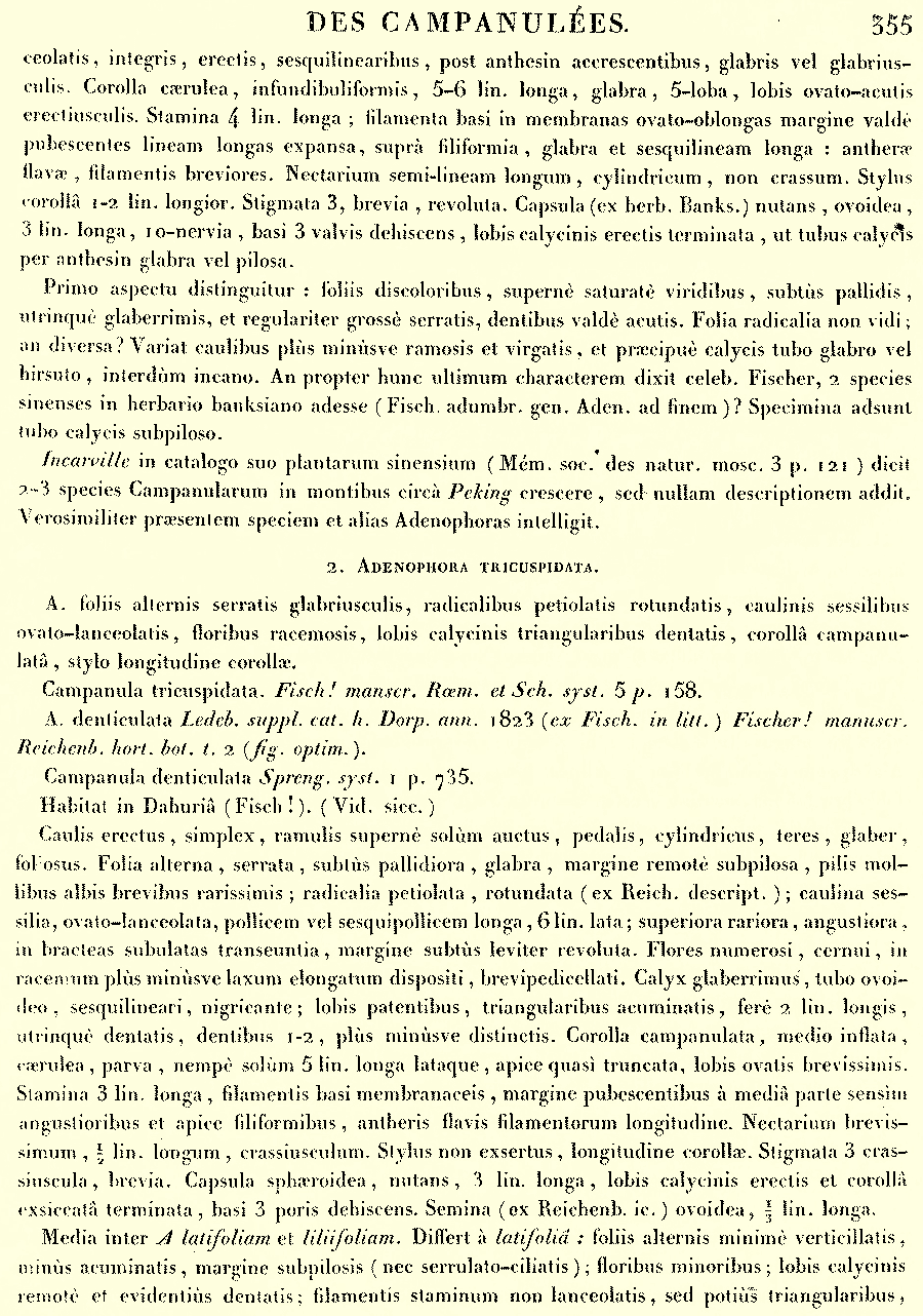 | Andriy Kovalchuk | Обнародование комбинации Adenophora tricuspidata (Fisch. ex Schult.) A. DC. (Monographie des Campanulées: 355. 1830):