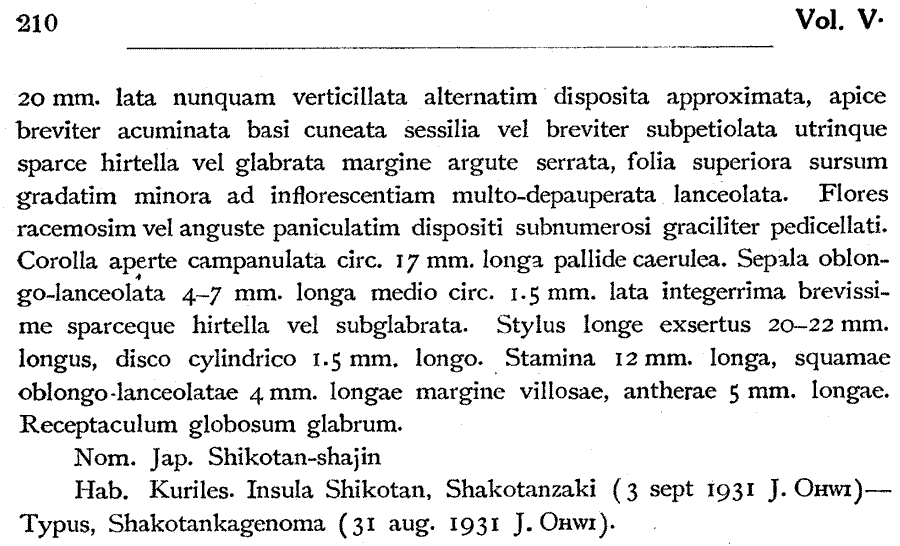 | Andriy Kovalchuk | Протолог Adenophora onoi Tatew. & Kitam. (Acta Phytotaxonomica et Geobotanica 5(3): 209. 1936):