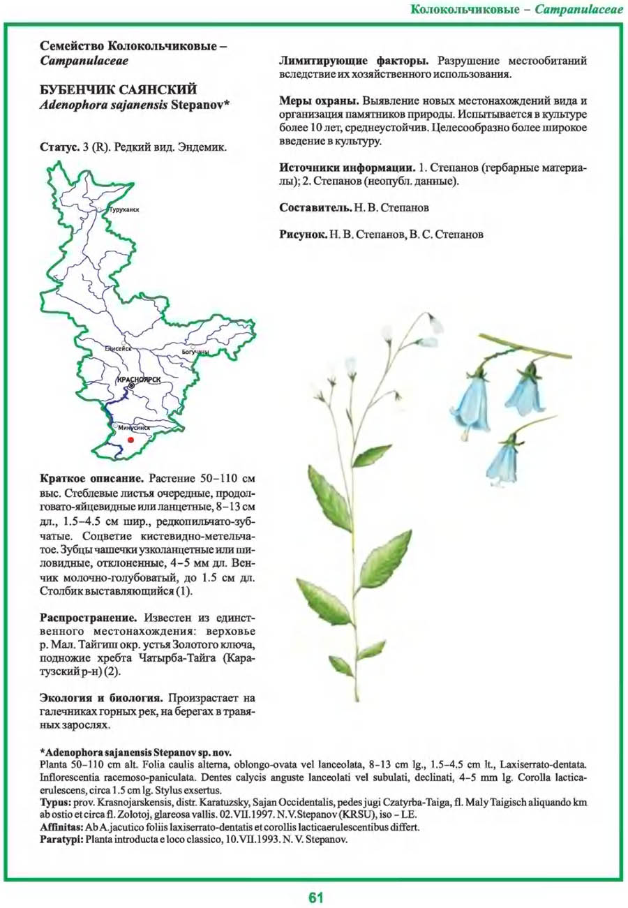 (Красная книга Красноярского края. Растения и грибы: 61. 2005):