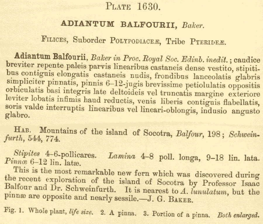 Протолог Adiantum balfourii Baker (Hooker's Icones Plantarum 17: t. 1630. 1886):