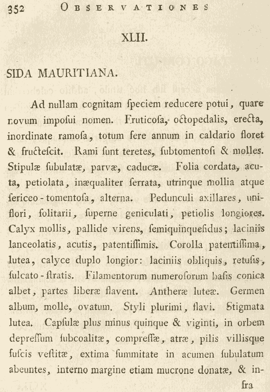 Протолог Sida mauritiana Jacq. (Miscellanea Austriaca ad Botanicam, Chemiam, et Historiam Naturalem Spectantia 2: 352. 1781):