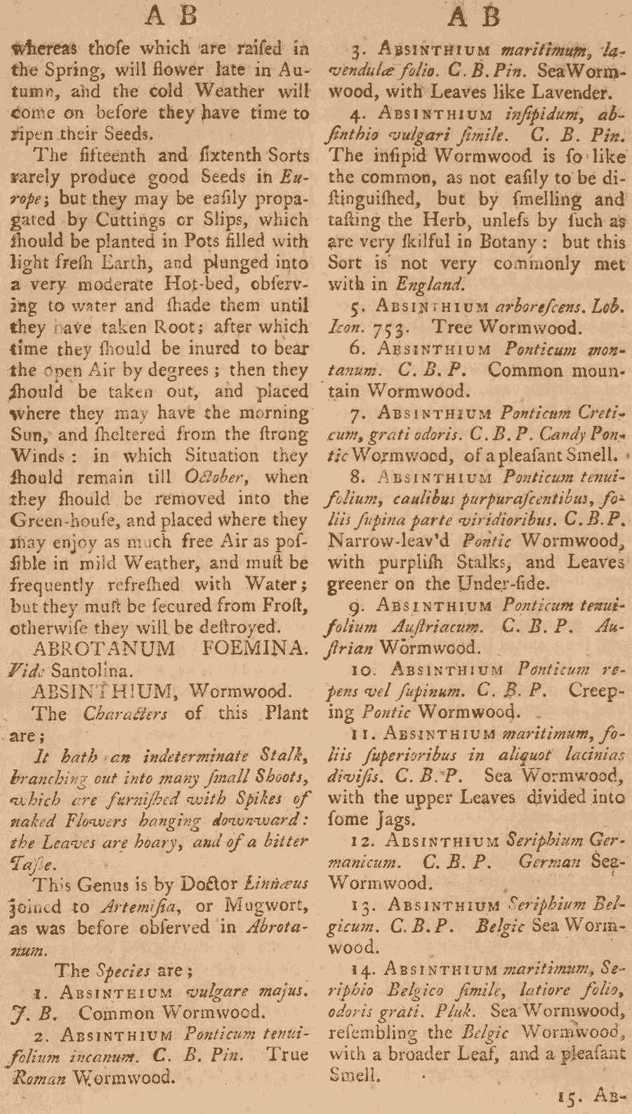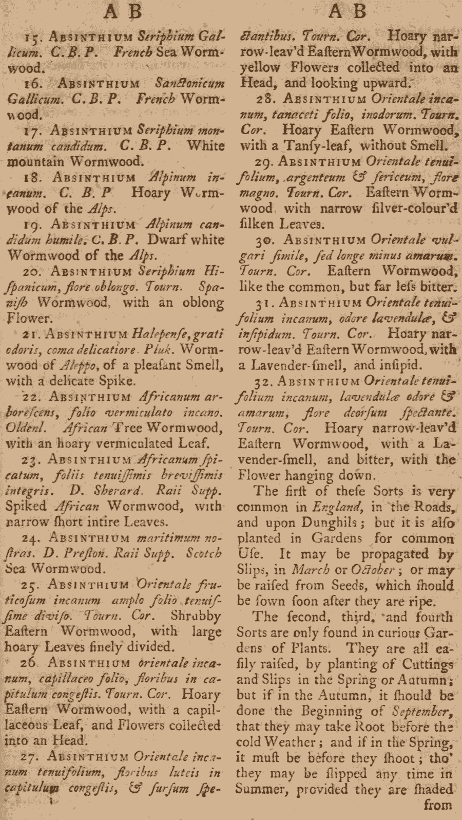 | Andriy Kovalchuk | Протолог рода Absinthium Mill. (The Gardeners Dictionary: containing the methods of cultivating and improving all sorts of trees, plants, and flowers, for the kitchen, fruit, and pleasure gardens, as also those which are used in medicine : with directions for the culture of vineyards, and making of wine in England : in which likewsie are included the practical parts of husbandry ...4th ed., corrected and enlarged: [unpaged]. 1754 [28 Jan 1754]):