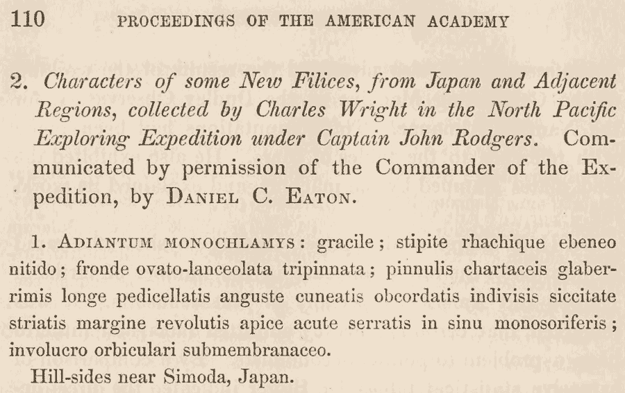 Протолог Adiantum monochlamys D.C. Eaton (Proceedings of the American Academy of Arts and Sciences 4: 110. 1858):