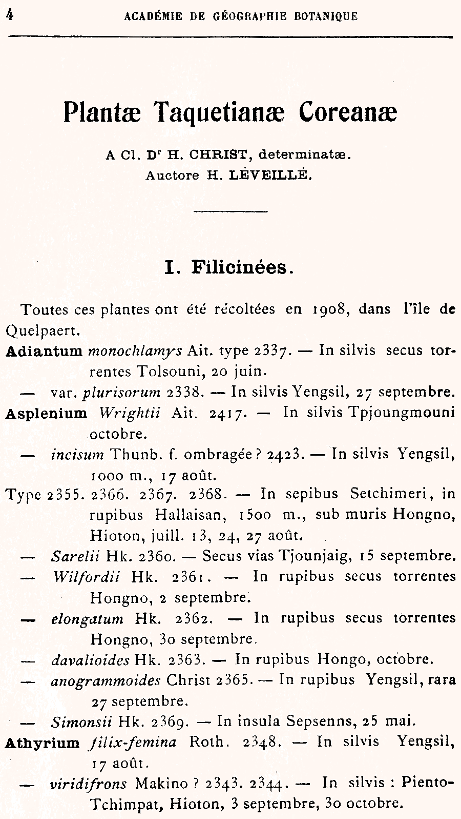 | Andriy Kovalchuk | Обнародование комбинации Adiantum monochlamys var. plurisorum H. Lév., nom. inval. (Bulletin de l'Académie Internationale de Géographie Botanique 20(243): 4. 1910 [Jan 1910]):