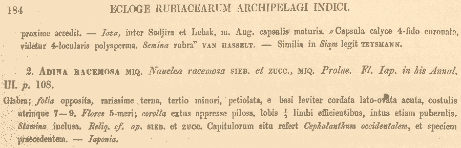 Протолог Nauclea racemosa Siebold & Zucc. (Abhandlungen der Mathematisch-Physikalischen Klasse der Königlich Bayerischen Akademie der Wissenschaften 4(3): 178. 1846):