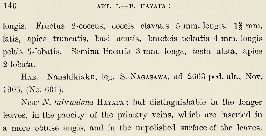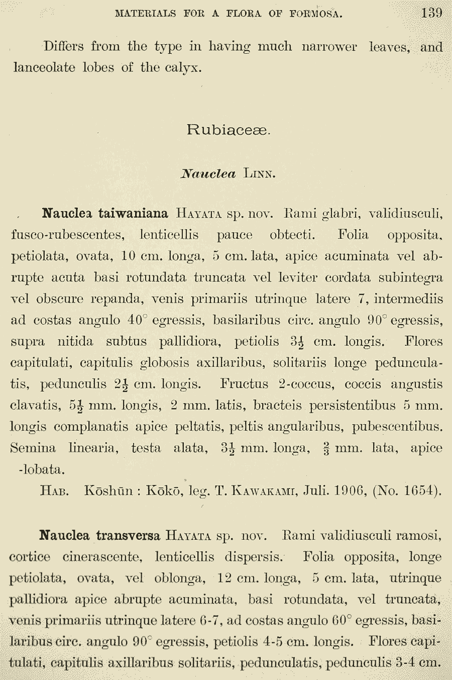 | Andriy Kovalchuk | Протолог Nauclea taiwaniana Hayata и Nauclea transversa Hayata (Journal of the College of Science, Imperial University of Tokyo 30(1): 139. 1911):