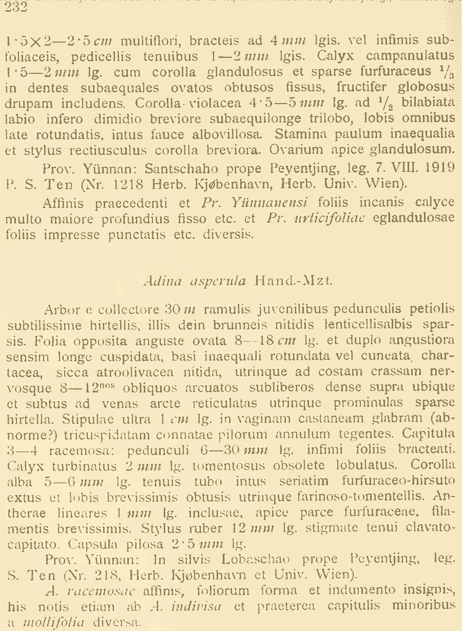 | Andriy Kovalchuk | Протолог Adina asperula Hand.-Mazz. (Anzeiger der Akademie der Wissenschaften in Wien. Mathematisch-naturwissenschaftliche Klasse 58 (26-27): 232. 1921):