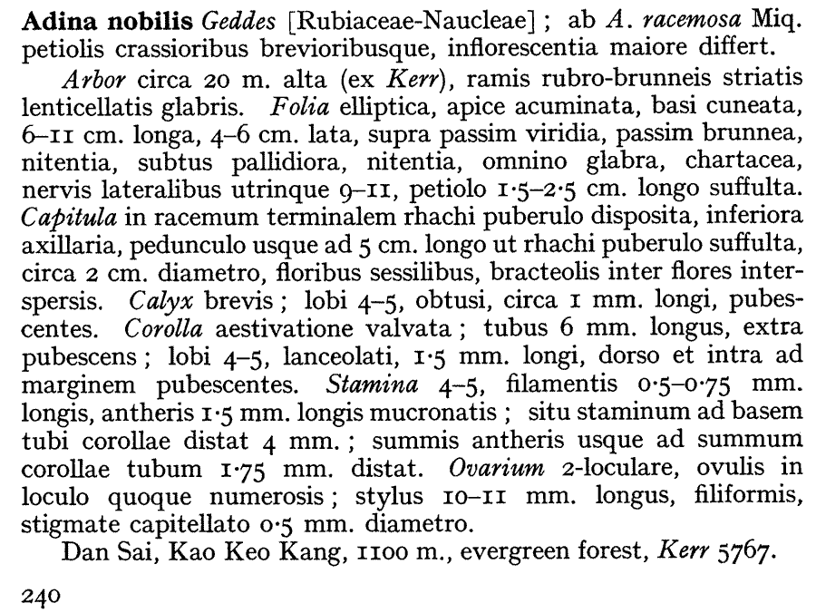 Протолог Adina nobilis Geddes (Bulletin of Miscellaneous Information, Royal Gardens, Kew 1928: 240. 1928):