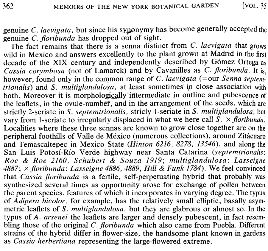 | Andriy Kovalchuk | Обнародование комбинации Senna × floribunda (Cav.) H.S. Irwin & Barneby (Memoirs of The New York Botanical Garden 35: 360. 1982):