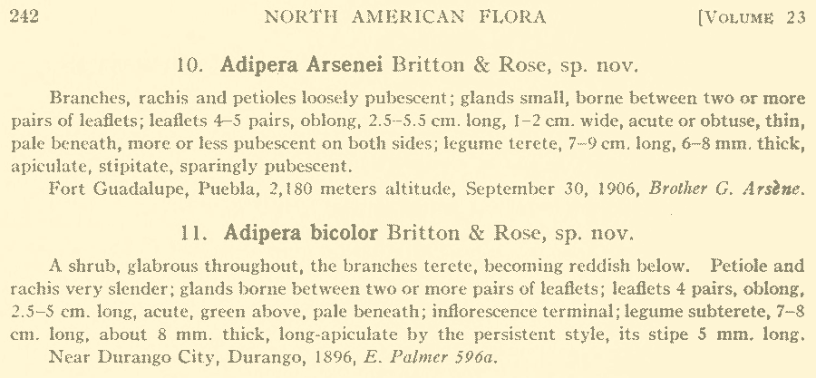 Протолог Adipera arsenei Britton & Rose и Adipera bicolor Britton & Rose (North American Flora 23(4): 242. 1930):
