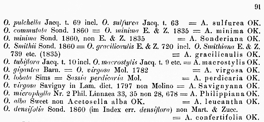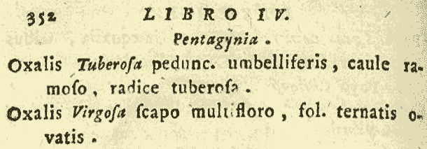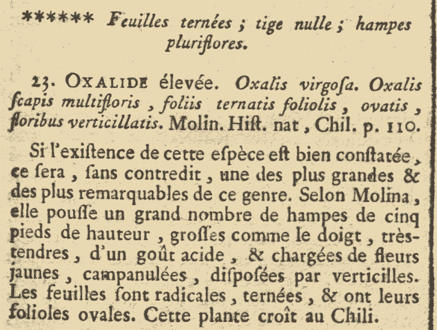 Протолог Oxalis virgosa Molina (Saggio sulla Storia Naturale del Chili 1: 132–133, 352. 1782 [Oct 1782]):