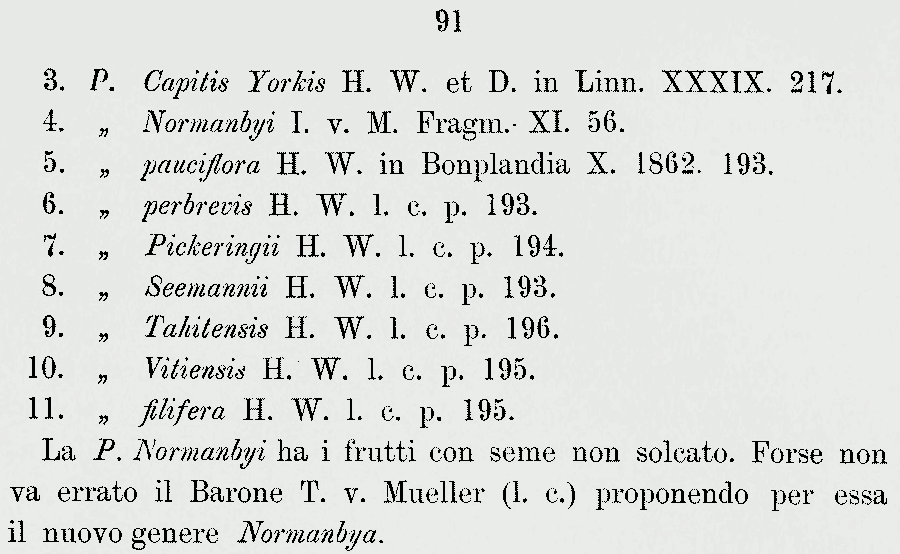 | Andriy Kovalchuk | Протолог рода Normanbya F. Mueller ex Becc. (Annales du Jardin Botanique de Buitenzorg 2: 91, 170, 171. 1885; тип: Normanbya muelleri Becc., nom. illeg. (≡ Cocos normanbyi W. Hill ≡ Normanbya normanbyi (W. Hill) L.H. Bailey):