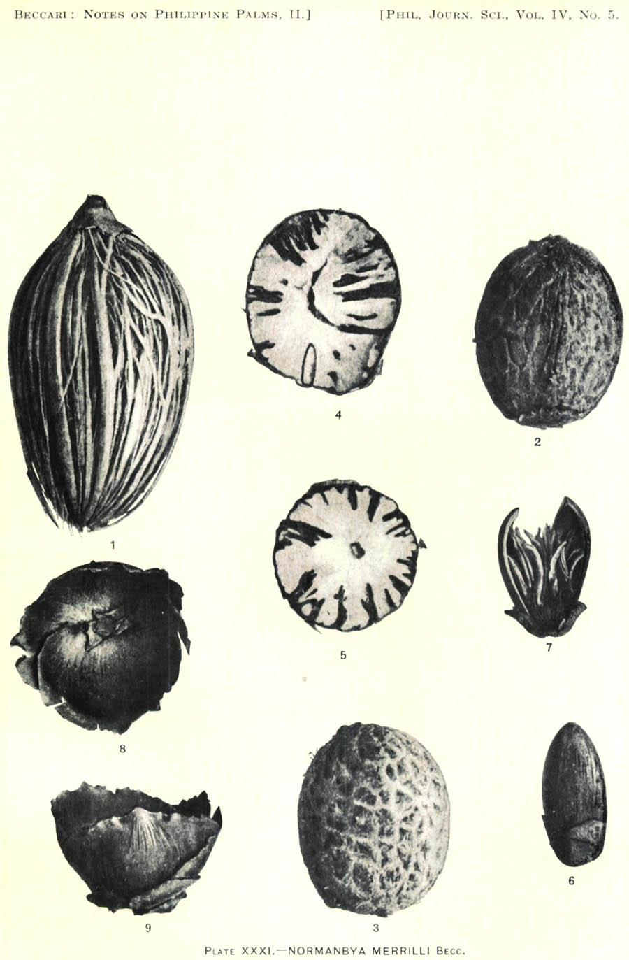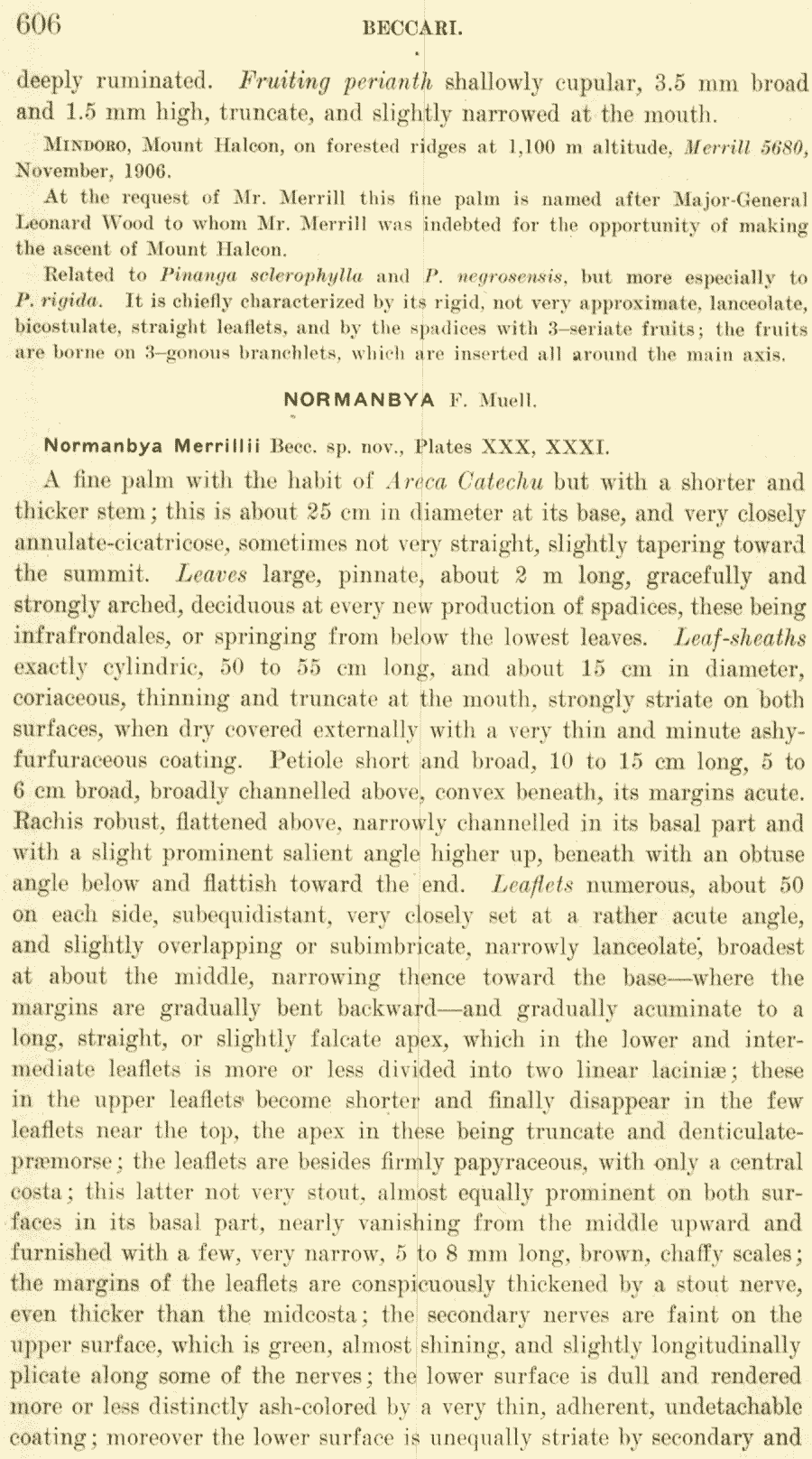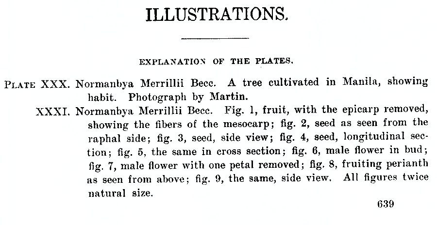 Протолог Normanbya merrillii Becc. (Philippine Journal of Science 4(5): 606–609, t. 30–31. 1909 [3 Dec 1909]):