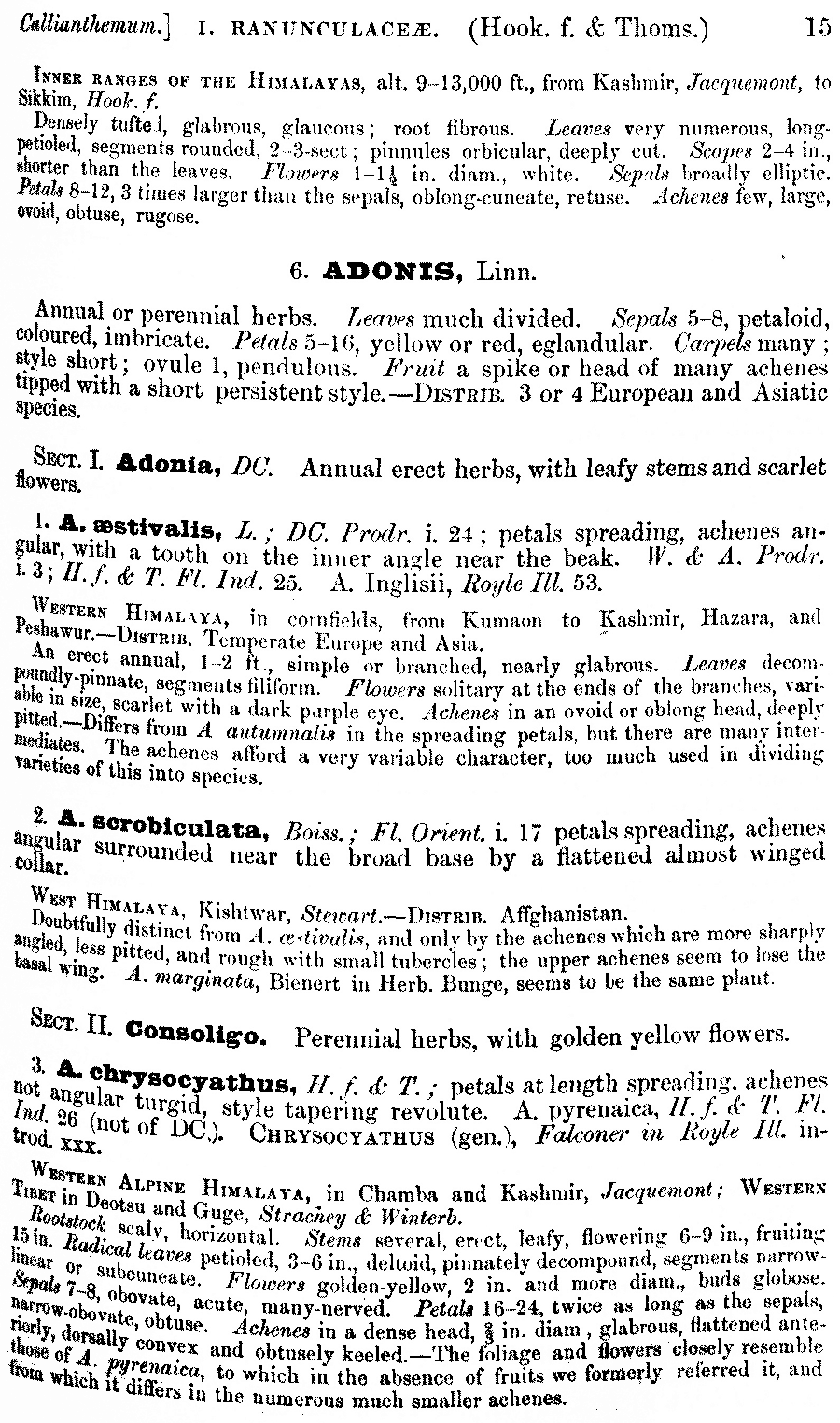 Протолог Adonis chrysocyathus Hook. f. & Thomson (The Flora of British India 1(1): 15. 1872):