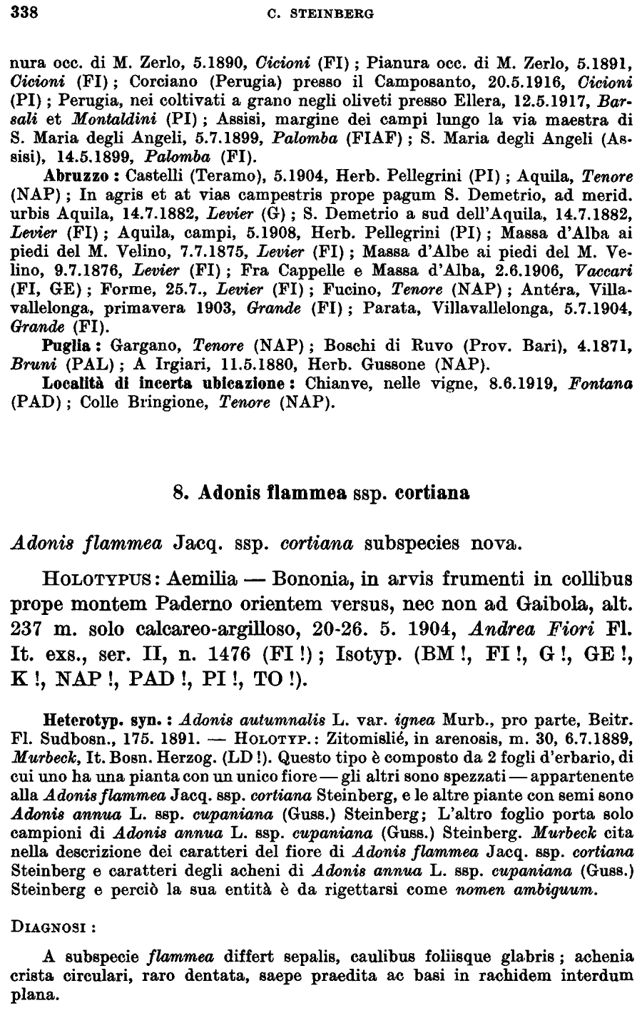 Протолог Adonis flammea ssp. cortiana C.H. Steinb. (Webbia 25(2): 338. 1971):