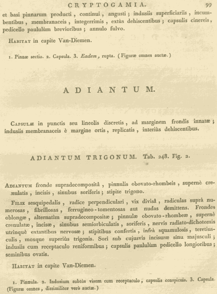 Протолог Adiantum trigonum Labill. (Novae Hollandiae Plantarum Specimen 2: 99, t. 248, f. 2. 1806):