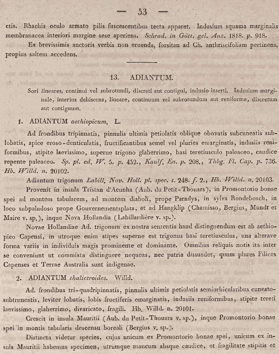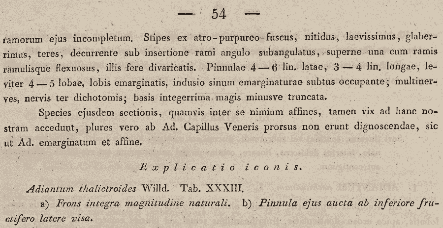 Протолог Adiantum thalictroides Willd. ex Schltdl. (Adumbrationes Plantarum 5: 53. 1832):