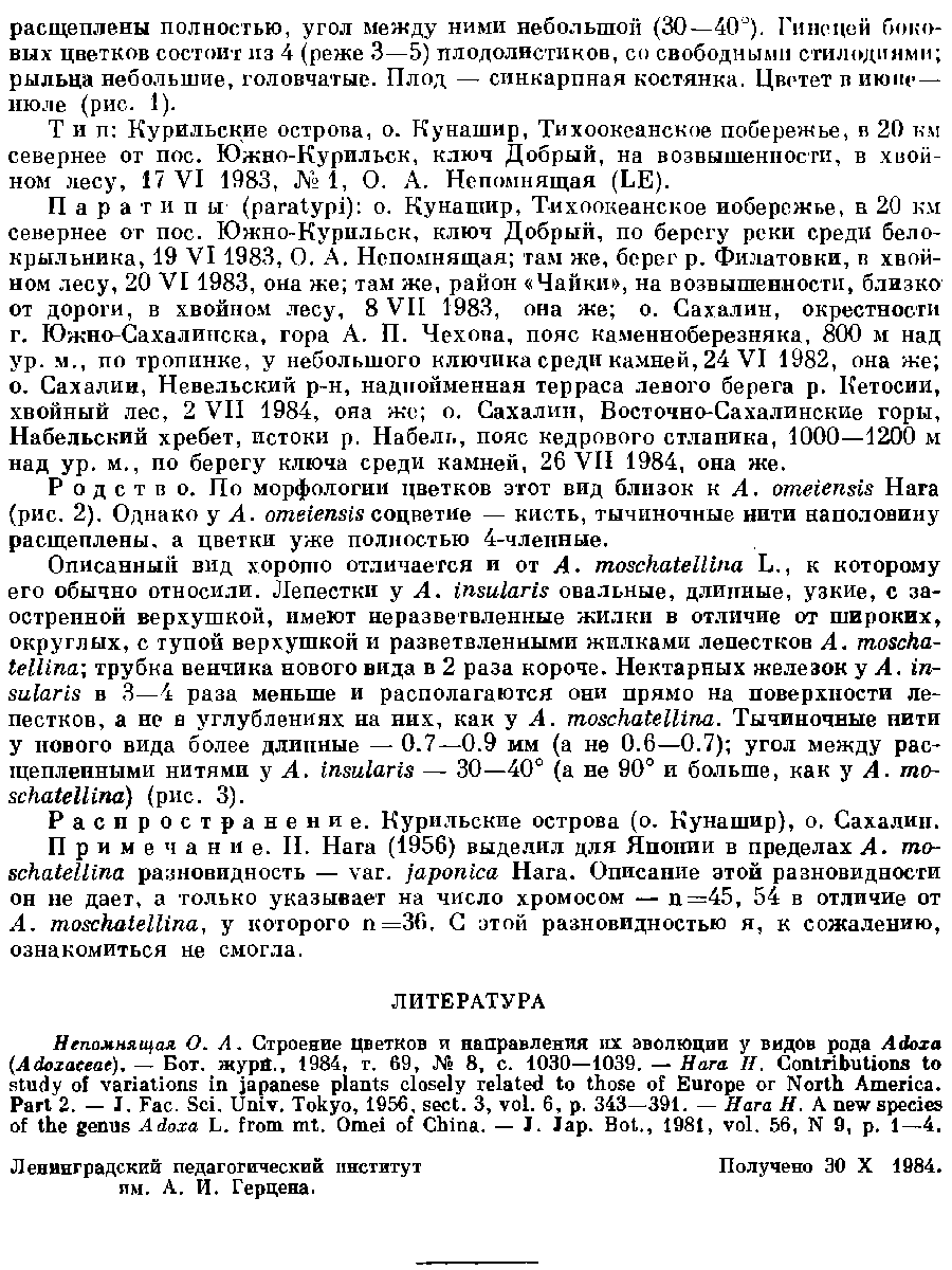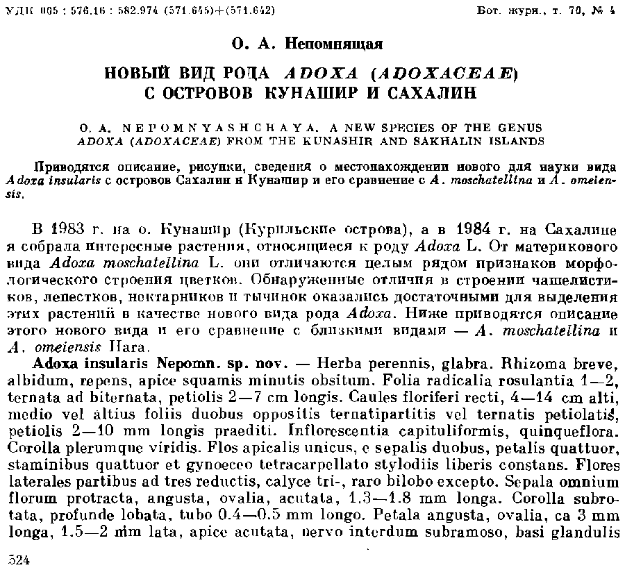 (Ботанический журнал 70(4): 524. 1985):