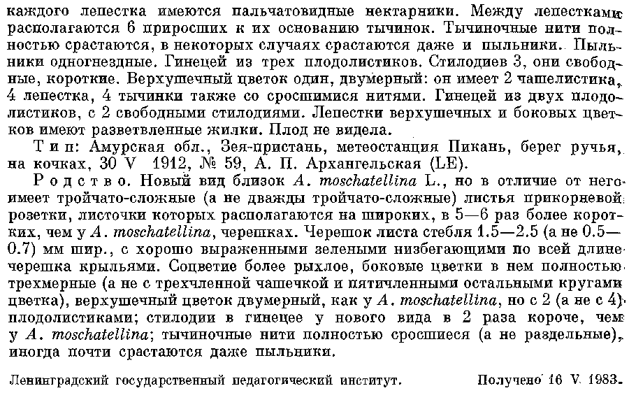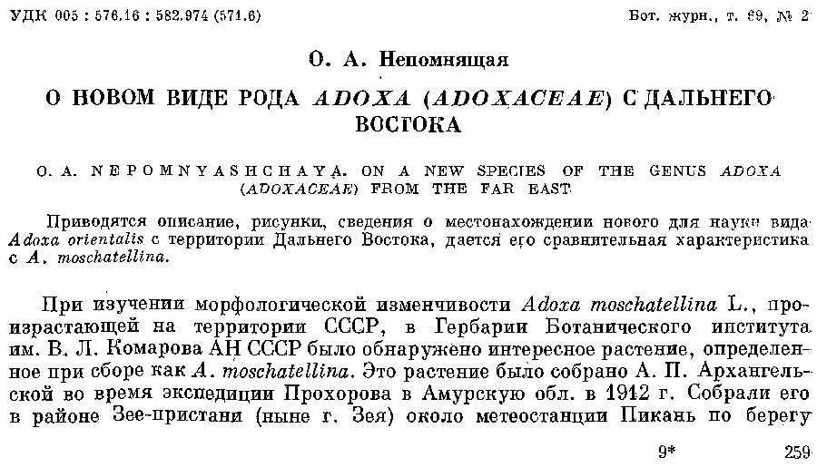 | Andriy Kovalchuk | Протолог Adoxa orientalis Nepomn. (Ботанический журнал 69(2): 259. 1984):