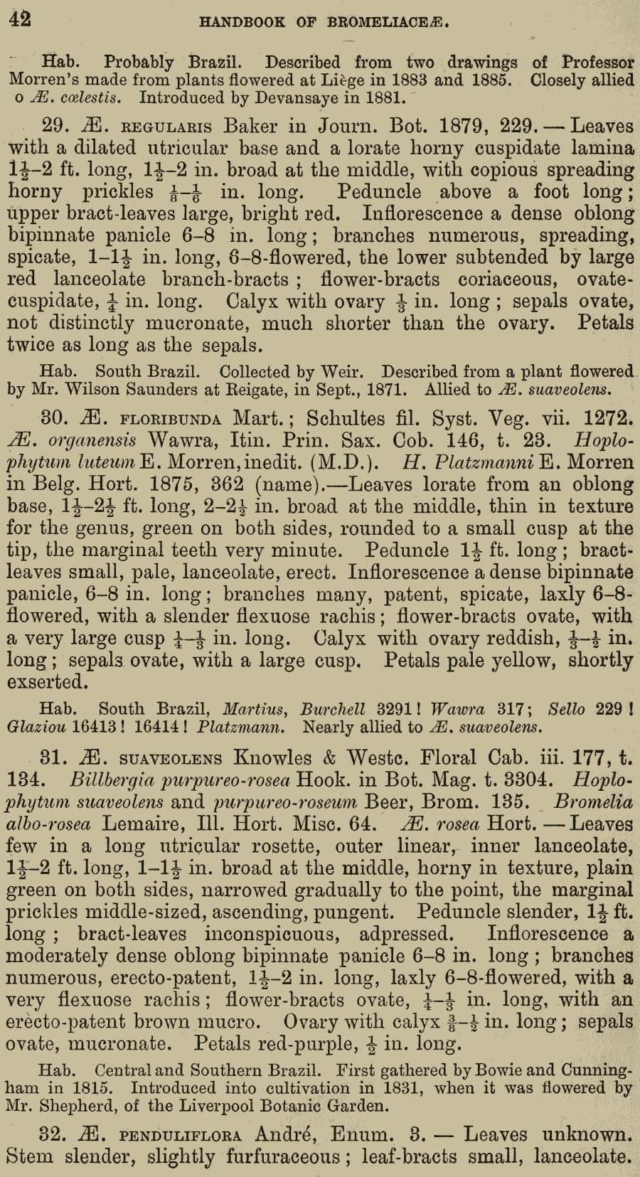 Протолог Aechmea caudata Lindm. (Kongliga Svenska Vetenskaps Academiens Handlingar, Ny Följd 24(8): 29, t. 6, f. 1–9. 1891):