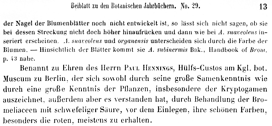 | Andriy Kovalchuk | Протолог Aechmea henningsiana Wittm. и Aechmea platzmannii Wittm. (Botanische Jahrbücher für Systematik, Pflanzengeschichte und Pflanzengeographie 13 (Beibl. 29): 12. 1891):