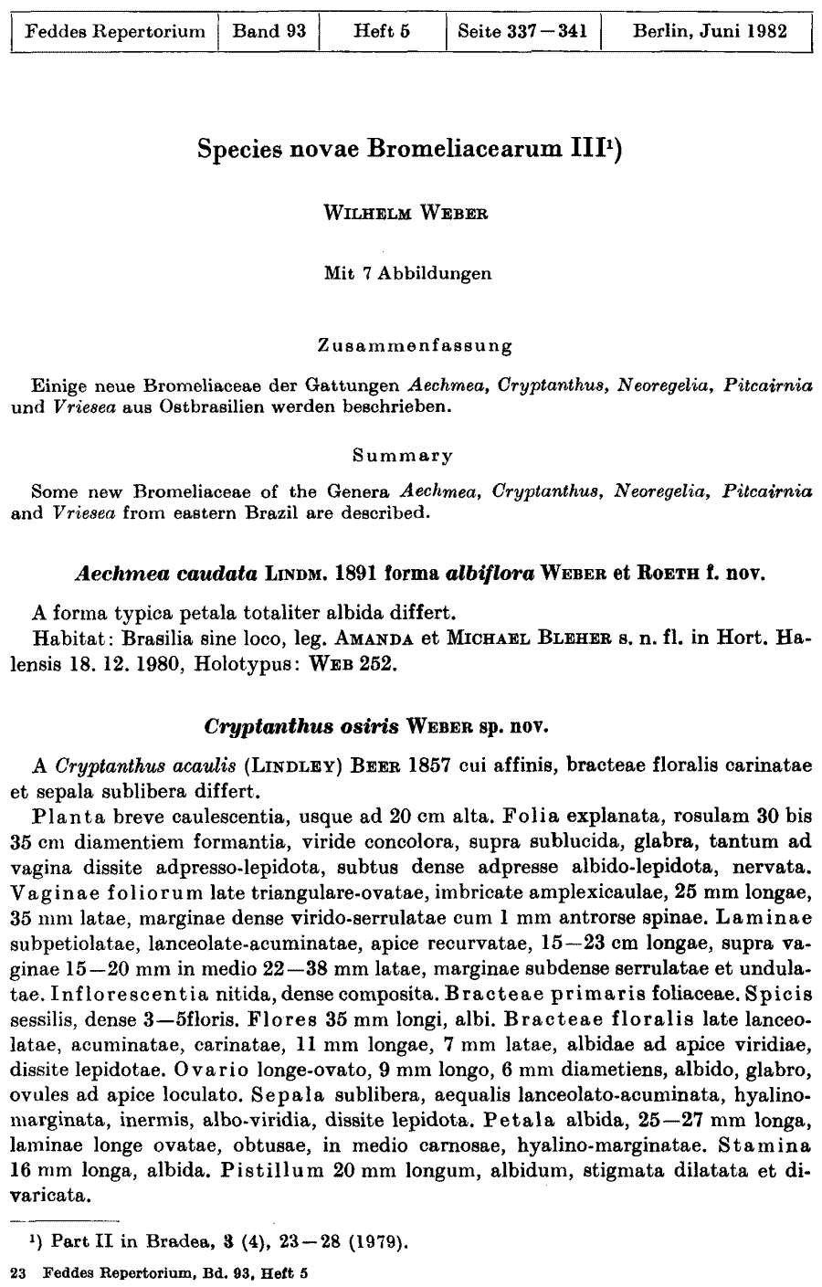 Протолог Aechmea caudata f. albiflora W.Weber & Roeth (Feddes Repertorium 93: 337. 1982):
