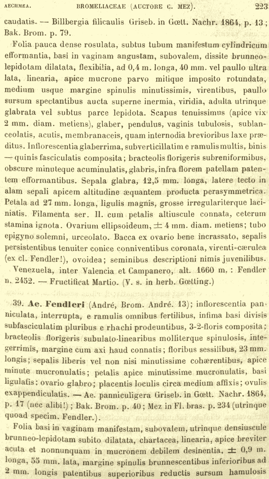 Протолог Aechmea fendleri André ex Mez (Monographiae Phanerogamarum 9: 223. 1896):