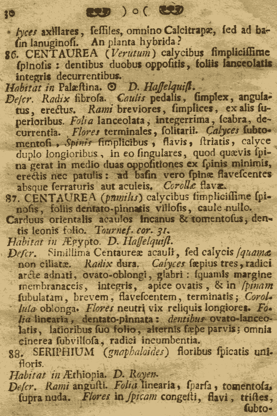 Протолог Centaurea pumilio L., nom. cons. & orth. cons. (Centuria Plantarum I: 30. 1755 [19 Feb 1755]):