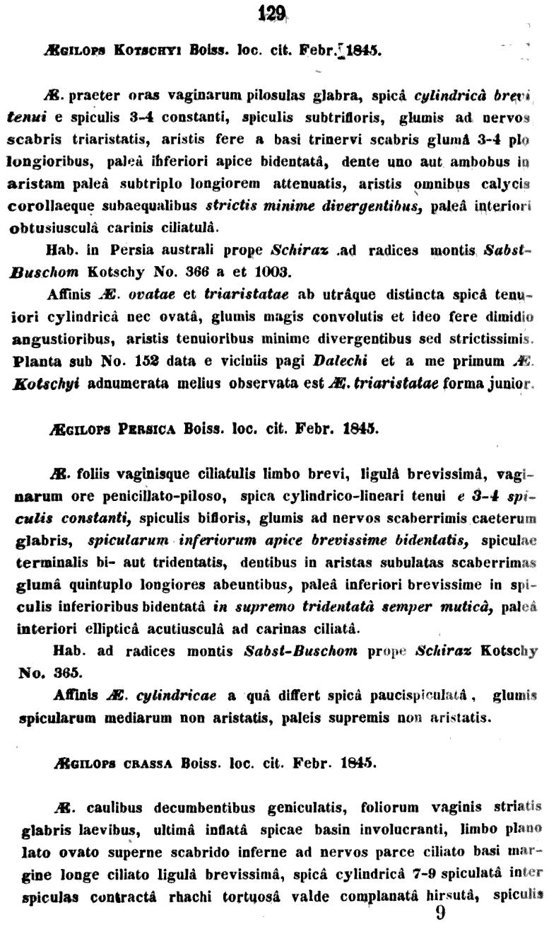 Протолог Aegilops crassa var. macrathera Boiss. (Flora Orientalis 5(2): 677. 1884):