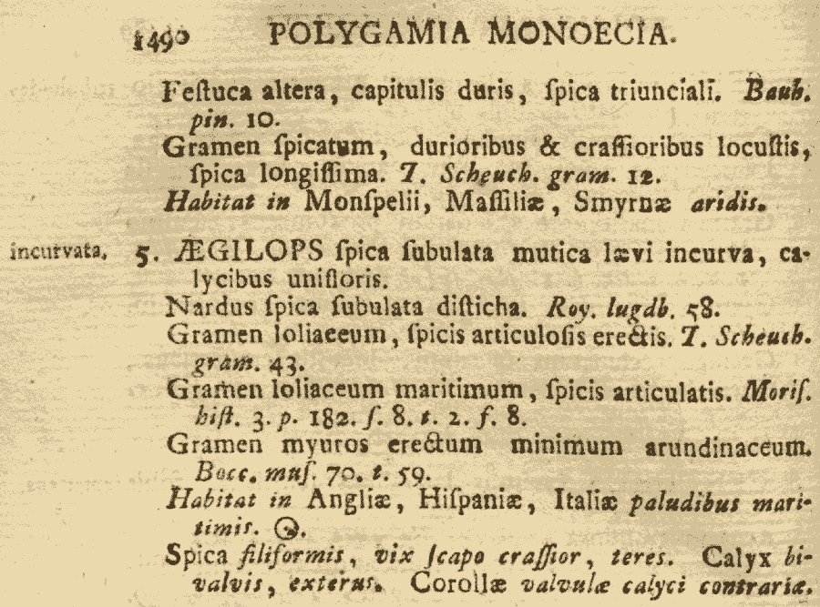 Протолог Aegilops incurva L. (Species Plantarum 2: 1051. 1753 [1 May 1753]):