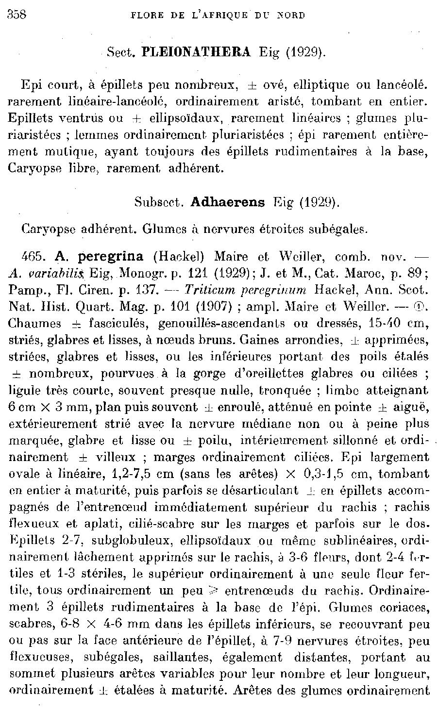 | Andriy Kovalchuk | Обнародование комбинации Aegilops peregrina (Hack.) Maire & Weiller (Flore de l'Afrique du Nord 3: (Encycl. Biol. 48) 358. 1955):