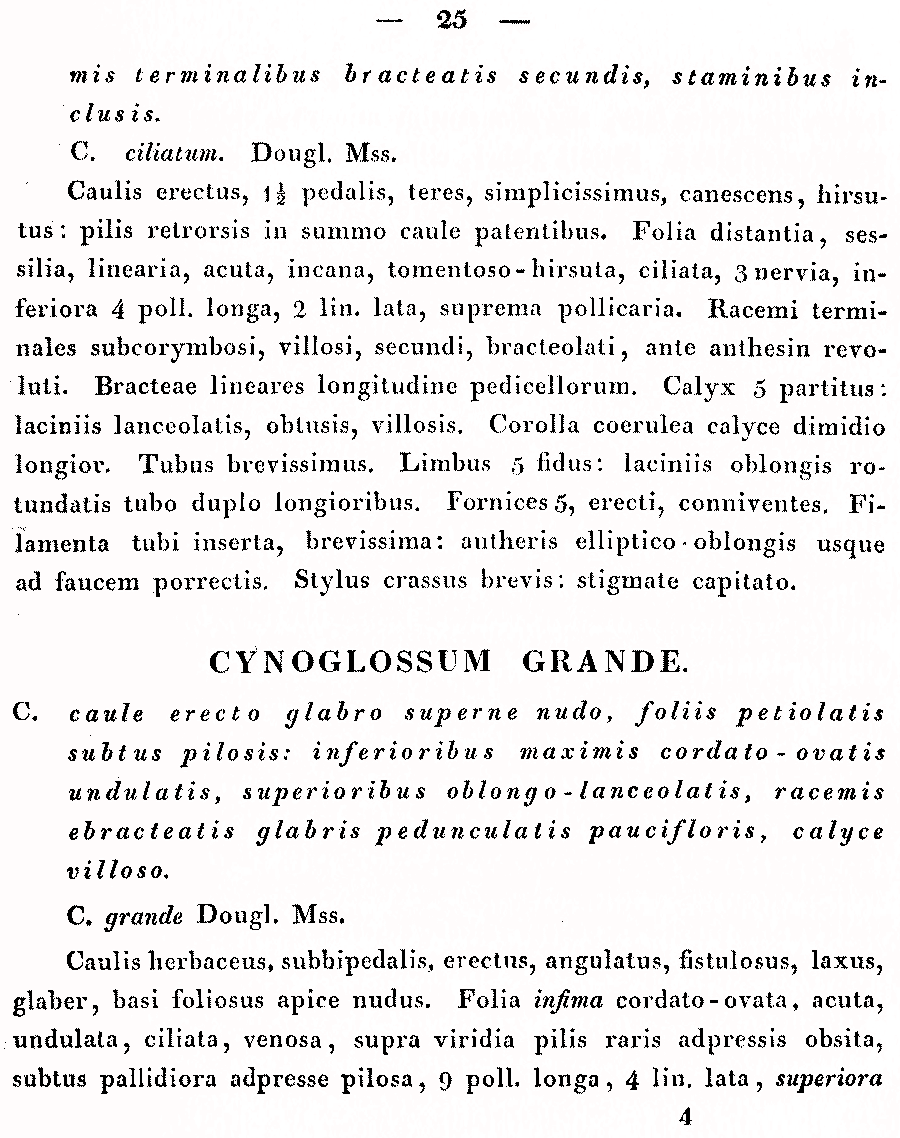 Протолог Cynoglossum grande Dougl. ex Lehm. (Novarum et Minus Cognitarum Stirpium Pugillus 2: 25. 1830):