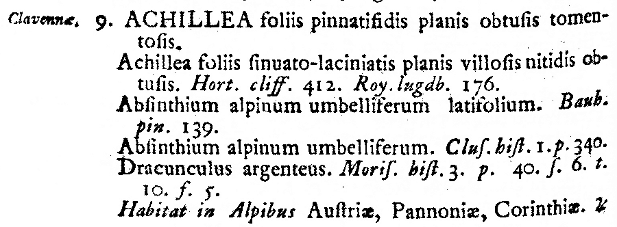 Протолог Achillea clavennae L. (Species Plantarum 2: 898. 1753 [1 May 1753]):