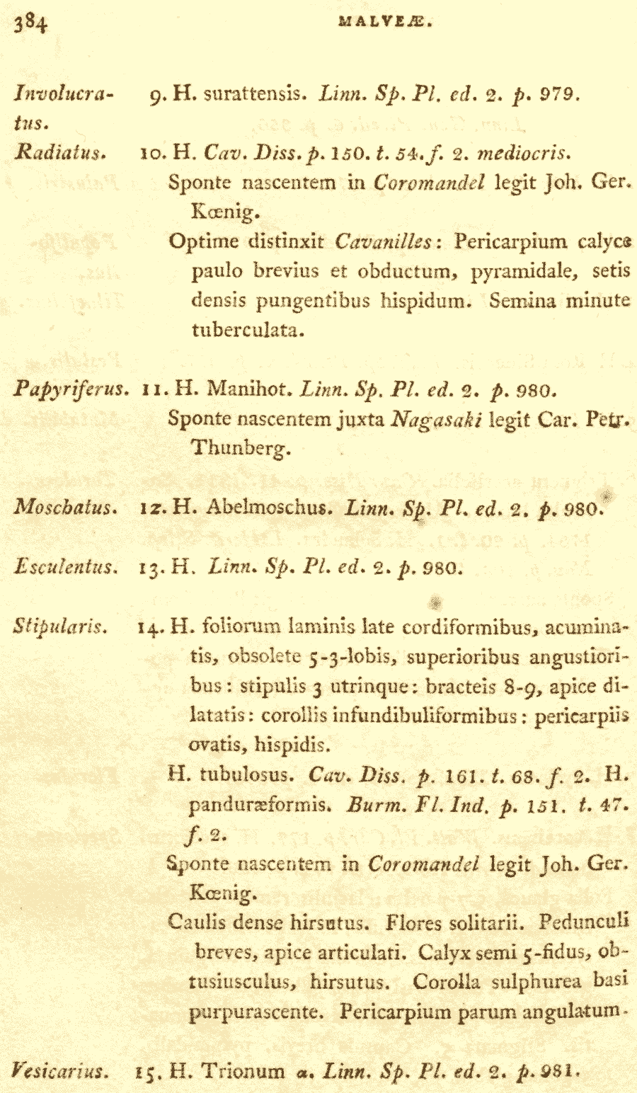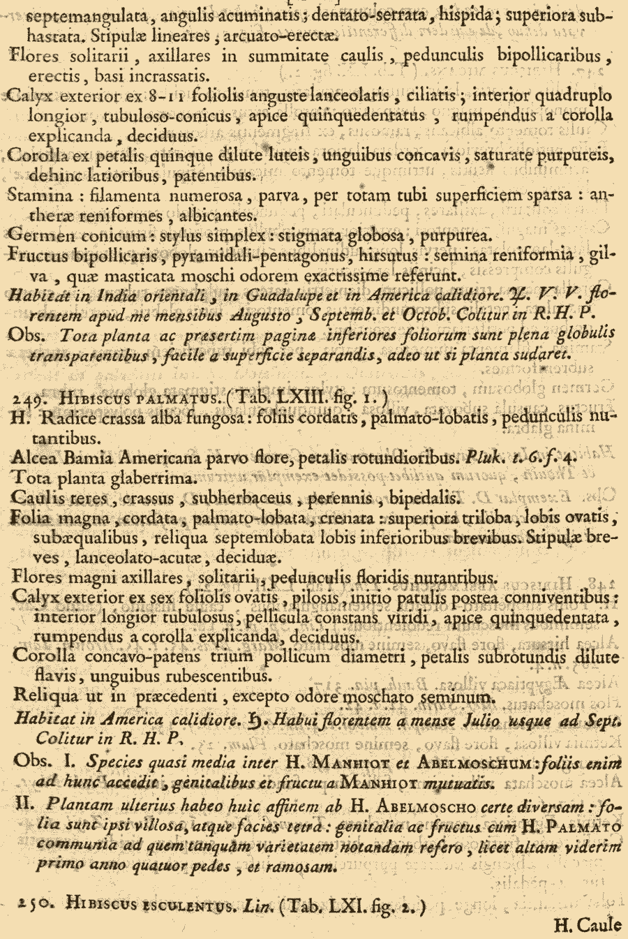 Протолог Hibiscus manihot L. (Species Plantarum 2: 696. 1753 [1 May 1753]):