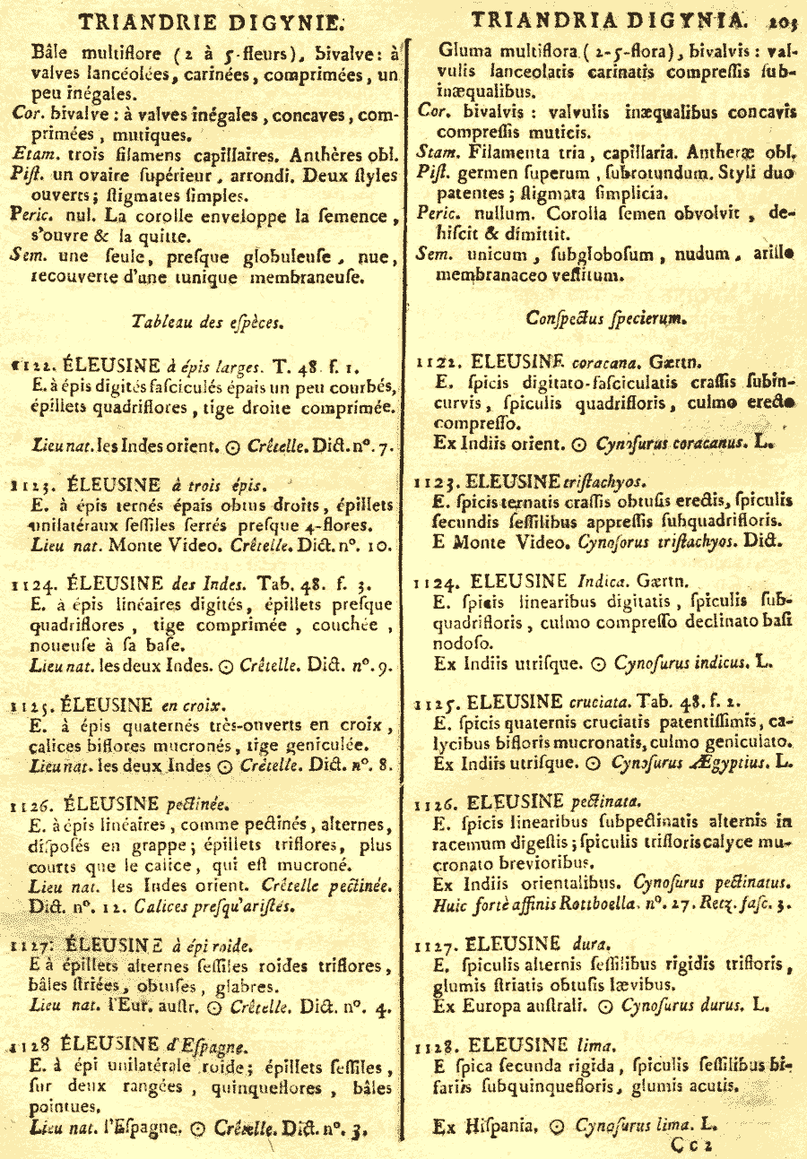 | Andriy Kovalchuk | Обнародование комбинации Eleusine cruciata Lam., nom. illeg. (Tableau Encyclopédique et Methodique. Botanique 1: 203, t. 48, f. 2. 1792 [13 Feb 1792]):