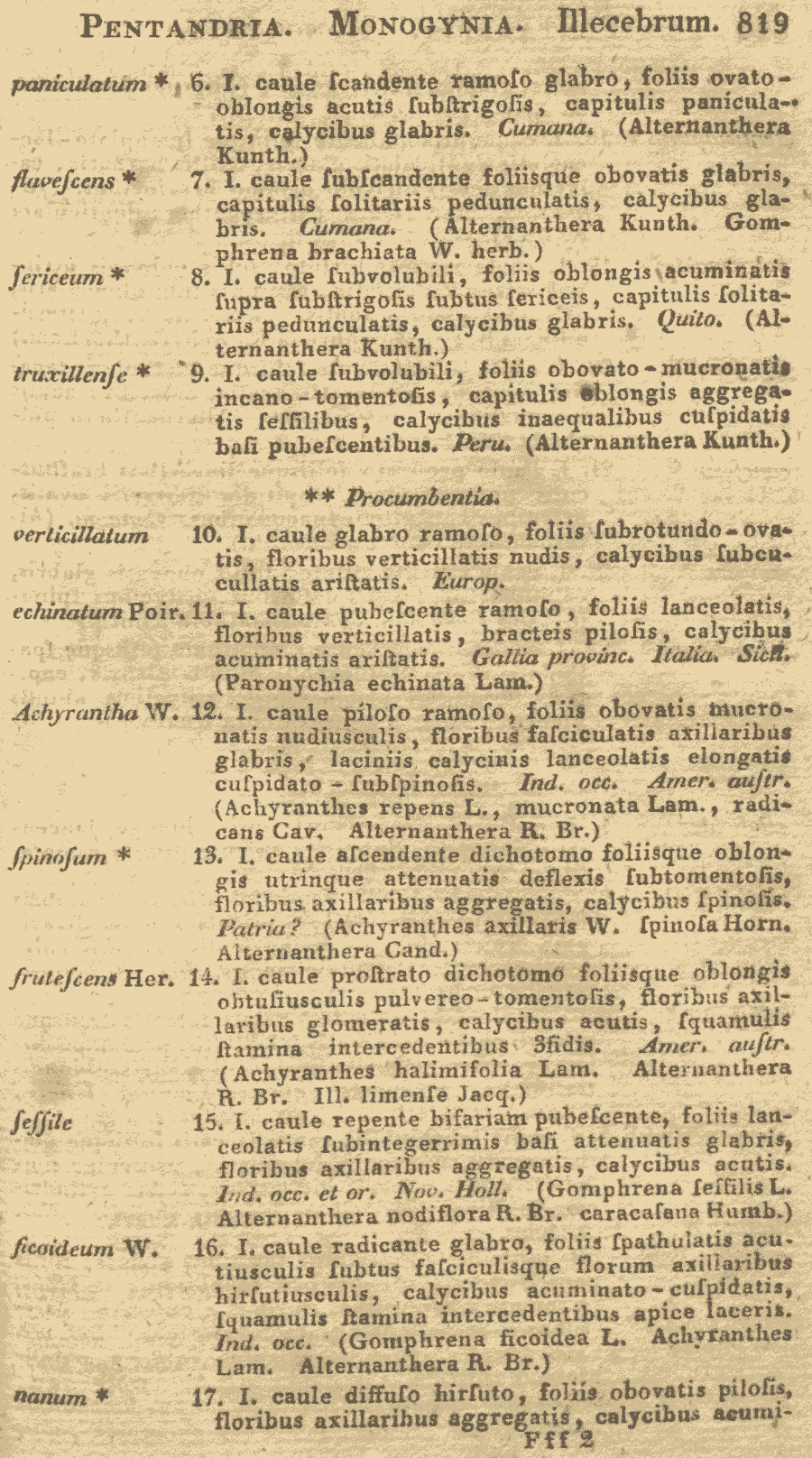 | Andriy Kovalchuk | Комбинации Achyranthes incana Pav. ex Moq., Celosia peruviana Van Spand. ex Moq. и Illecebrum incanum Rich. ex Moq. из списка синонимов можно пометить как nom. inval.