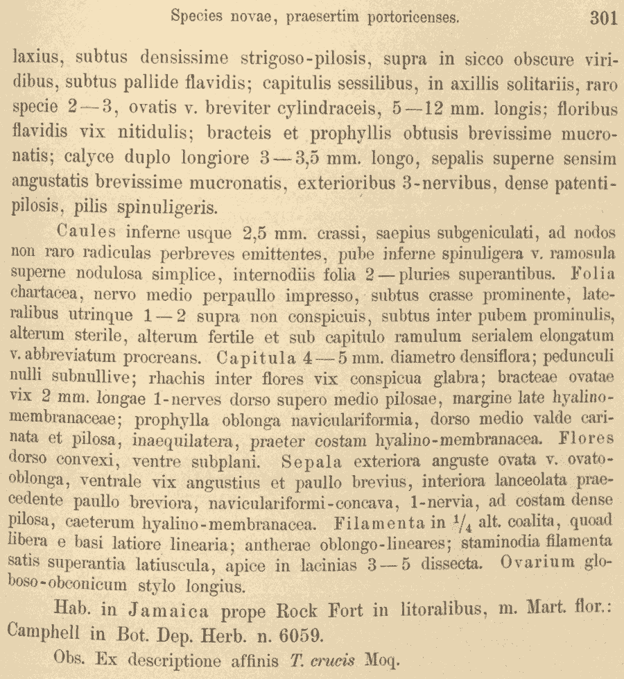 | Andriy Kovalchuk | Протолог Telanthera crucis Moq. и обнародование комбинации Illecebrum incanum Rich. ex Moq., nom. inval. (Prodromus Systematis Naturalis Regni Vegetabilis [A. P. de Candolle] 13(2): 362. 1849):