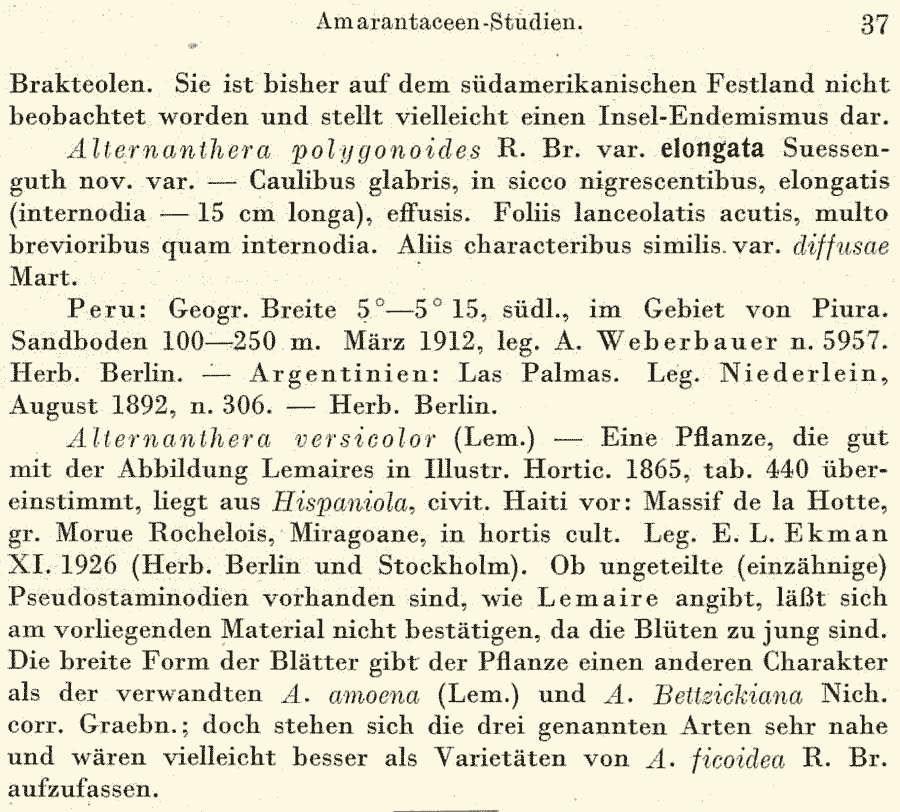 | Andriy Kovalchuk | Протолог Alternanthera polygonoides var. elongata Suess. (Repertorium Specierum Novarum Regni Vegetabilis 44: 37. 1938):