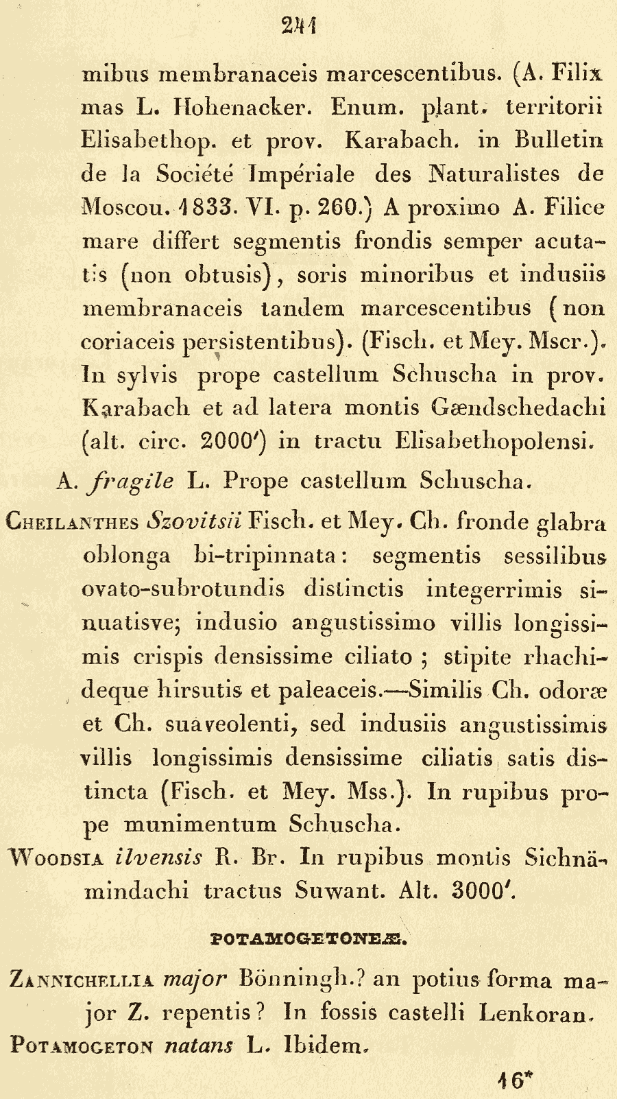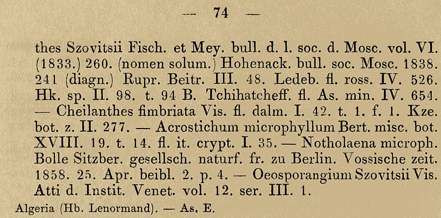 | Andriy Kovalchuk | Протолог Cheilanthes szovitsii Fischer & C.A. Meyer (Bulletin de la Société impériale des naturalistes de Moscou 11: 241. 1838):